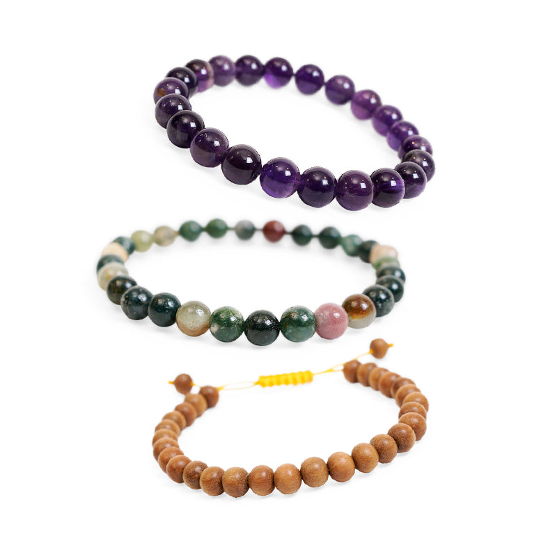 PULSERA ELÁSTICA CIANITA (8 MM) + OM PLATA 925
