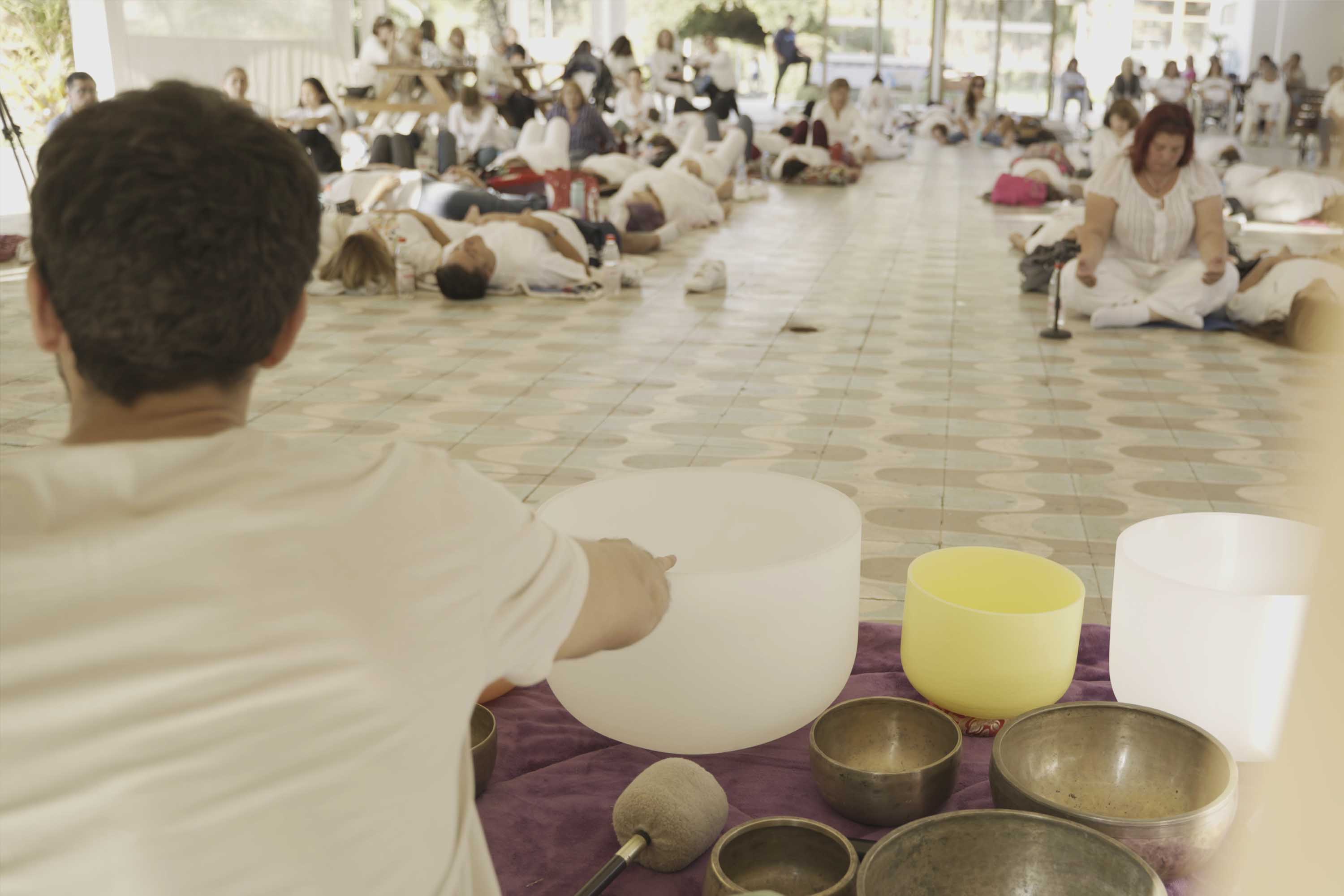 Se crea un viaje sonoro de profunda armonía y conexión con el universo, a través de los Cuencos Tibetanos y Gongs, instrumentos milenarios que emiten una vasta gama de frecuencias, que van desde los 30 hasta los 2500 Hz.