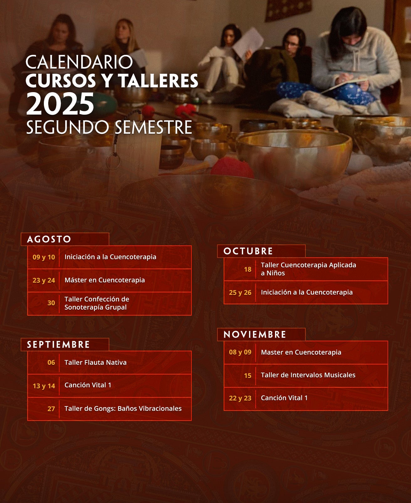 ¡Te invitamos a formar parte de nuestros Cursos y Talleres en Casa del Cuenco 🌟. Aquí podrás expandir tus conocimientos sobre Sonoterapia, sus increíbles beneficios y cómo aplicarla para ayudar a los demás 🌱.